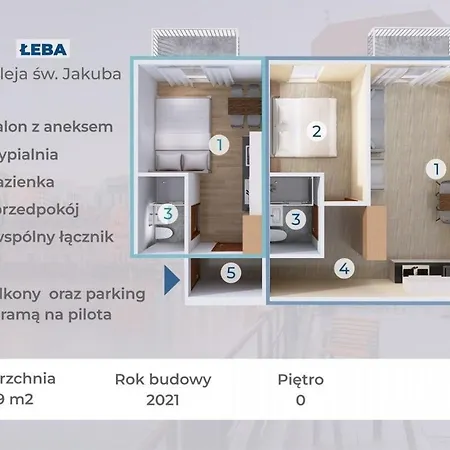 Plaza zachodnia Leba can be reached by car in a few minutes, while Sports Hall is right by this apartment. The city centre is just 1 km away and Gdansk Lech Walesa airport is 100 km from the property.